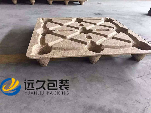 模壓托盤全稱是植物纖維模壓平面工業托盤,以廢棄木料、植物秸稈等為原料,通過專業的設備對原材料進行破碎、蒸汽干燥及熱處理,面板和9個支撐腳一次模壓成型,托盤板上表面平整光滑,下表面設有加強筋。板面縱橫受力均衡,九個腳分布能滿足鏟車四向插入,是整體結構。