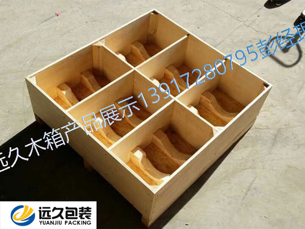 木箱包裝可以按照產品的形態、大小,得到規格化、標準化,符合集合包裝的要求。比如這款按要求定做用來包裝電機的實木木箱,我們叫做電機專用木包裝箱,木箱底座根據所要包裝的電機形狀來設計,用枕木挖出與電機形狀一樣的造型,固定在木箱包裝的底座上。